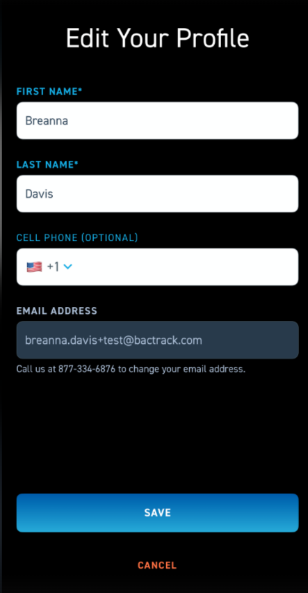 - The first setting is EDIT YOUR PROFILE. Here you will be able to edit your FIRST NAME, LAST NAME, AND CELL PHONE. If you wish to update your EMAIL ADDRESS, please contact our support team at the number listed on the screen and our representatives will be happy to help you.