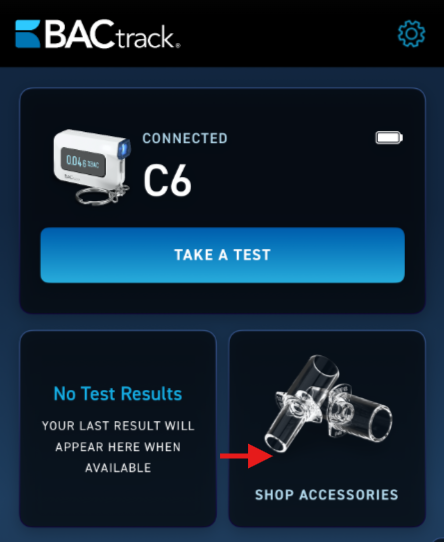 On the home screen of the BACtrack consumer app, there is an option to SHOP ACCESSORIES as shown below.